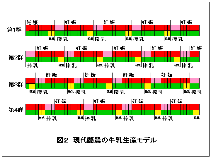 sulfatee:エストロンの硫酸抱合体)が存在する。ウシが妊娠するとその濃度が高くなり、妊娠41〜60日には151pg/mLとなり、妊娠220〜240日には1000pg/mLに達する。この硫酸エストロンは、口から入ってエストロジェン効果を示す女性ホルモンである。事実、妊娠馬の尿から抽出・精製した硫酸エストロンがプレマリンという天然経口ホルモン剤として医療に使われている。 現在の酪農家は4種類の乳牛から搾乳している(図2)。妊娠していない牛、妊娠前期の牛、妊娠中期の牛、妊娠後期の牛の4種類である。出産直後の5日間と出産前の2ヶ月(乾乳期)を除いて、すべてのウシから搾乳する(すなわち搾乳期間は300日)。牛乳はタンク内に集められ、牛乳メーカーに出荷されているから、日本の牛乳(もちろん他の先進国においても同様)の4分の3(75%)は妊娠牛から搾乳したものである。女性ホルモンはステロイド骨格であるから、加熱滅菌によって分解しない。したがって、市販の牛乳は女性ホルモン(数百pg/mLの卵胞ホルモンとその数十倍の黄体ホルモン)を含んでいる。言い換えれば、牛乳は「妊娠した雌ウシの白い血液」である。現在のアイスクリーム、チーズ、バター、ヨーグルトなどの乳製品は、みなこの妊娠牛からの女性ホルモン入りの「白い血液」から作られている。 ミルクは純粋な白い液体で、ビタミン・ミネラルなどの栄養素を豊富に含む健康的な飲み物だと考えている方もおいでだろう。しかし、この「健康的な飲み物」は巧みにつくり上げられた幻想に過ぎない。哺乳動物のミルクは、赤ん坊の成長と発達を促すために、たくさんのホルモンやホルモン様物質を高濃度に含んでいる液体(ホルモンカクテル)なのだ。ミルクは、単に養分を与えるだけでなく、細胞の分裂と増殖を刺激して、赤ん坊の急速な成長を促している。ミルクに含まれている最も強力な成長因子は、インスリン様成長因子1(IGF-1)と呼ばれるホルモン様物質である。当然のことながら、離乳期を過ぎた哺乳動物はミルクを必要としない。人間は、離乳後にもミルクを飲み続ける唯一の動物である。 牛乳は急速に成長する子ウシ(体重が1日に1kgも増える!)にとって完璧な飲み物であるが、人間の子ども(体重が1kg増えるのに1ヵ月かかる)には無用である。ましてや大人には害毒以外の何ものでもない。 つまり、ミルクは、それが人間のもの(母乳)であれ牛のもの(牛乳)であれ、親が赤ん坊に与えるべき数百種類もの化学物質を含んでいる液体なのだ。要するにミルクは、同種の動物の子どもの成長・発育に適うように精密に造られた非常に複雑な生化学的液体である。牛乳が悪い飲み物というわけではない。それはすばらしい飲み物である、ただし子牛にとって。ここに昨今の牛乳問題の本質がある。 現代の牛乳が抱える大きな問題の一つがこの牛乳中の女性ホルモン問題である。牛乳に含まれている女性ホルモン、エストロジェン(卵胞ホルモン)とプロゲステロン(黄体ホルモン)、は人間のものと同一である。環境ホルモン(外因性内分泌撹乱物質)と呼ばれる化学物質よりホルモン作用が少なくとも1万倍は高い。とくに、前思春期の子どもが影響を受け易い[1]。それにもかかわらず、酪農業界と関係の深い学者たちは「牛乳のホルモンは、女性の体内を流れているホルモンの量に比べれば微々たるものである」という。この人たちは、現代の牛乳が「妊娠動物の白い血液」であり、牛乳の女性ホルモン濃度が妊娠牛の血液中ホルモン濃度より高いということを忘れている。 彼らの反論根拠は、米国食品医薬品局(FDA)が定めた性ホルモンの安全摂取量(http://www.fda.gov)にある。この数値に比べると牛乳を通して人間の体内に入る女性ホルモンの量は少ないというのだ。FDAは、女性ホルモン濃度が最も低い前思春期の男の子の体内産生量の1%を外から摂取する性ホルモンの許容摂取量と定めている。エストロジェンの一つであるエストラジオールを例にとって説明しよう。 FDAは、前思春期男子のエストラジオールの体内産生量として6・5マイクログラム(マイクログラム=1000分の1グラム)という数値を採用した。したがって、6・5マイクログラムの1%である65ナノグラム(ナノグラム=10億分の1グラム)がエストラジオールの1日許容摂取量(ADI)となる。このFDAの数値は「食品添加物に関するFAO/WHOの共同専門委員会(JECFA)の数値[1]を借用したのである。しかし、FDAが安全摂取量の算出根拠に用いた前思春期の男の子のエストロゲンの体内生産量は極めて疑わしい数値で、この1日許容摂取量には多くの疑問が寄せられている[1-3]。 あるホルモンの体内産生量は、そのホルモンの血漿濃度とそのホルモンの代謝クリアランス(MCR:ホルモンが血液中から代謝によって除去される速度)から次式で求められる。 JECFAとFDAは、前思春期の男の子のエストラジオール産生量の計算に、1)古い方法で測定した著しく高い血漿エストラジオール濃度を用い、2)前思春期の男の子に比べて非常に大きい、成人女性の代謝クリア
